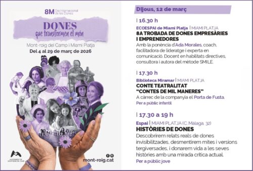 Miami Platja Descobrirem relats reals de dones invisibilitzades, desmentirem mites i versions tergiversades, i donarem vida a les seves històries amb una mirada crítica i actual. L'Espai Descarrega't el programa del 8M Dia Internacional de les Dones AQUÍ
