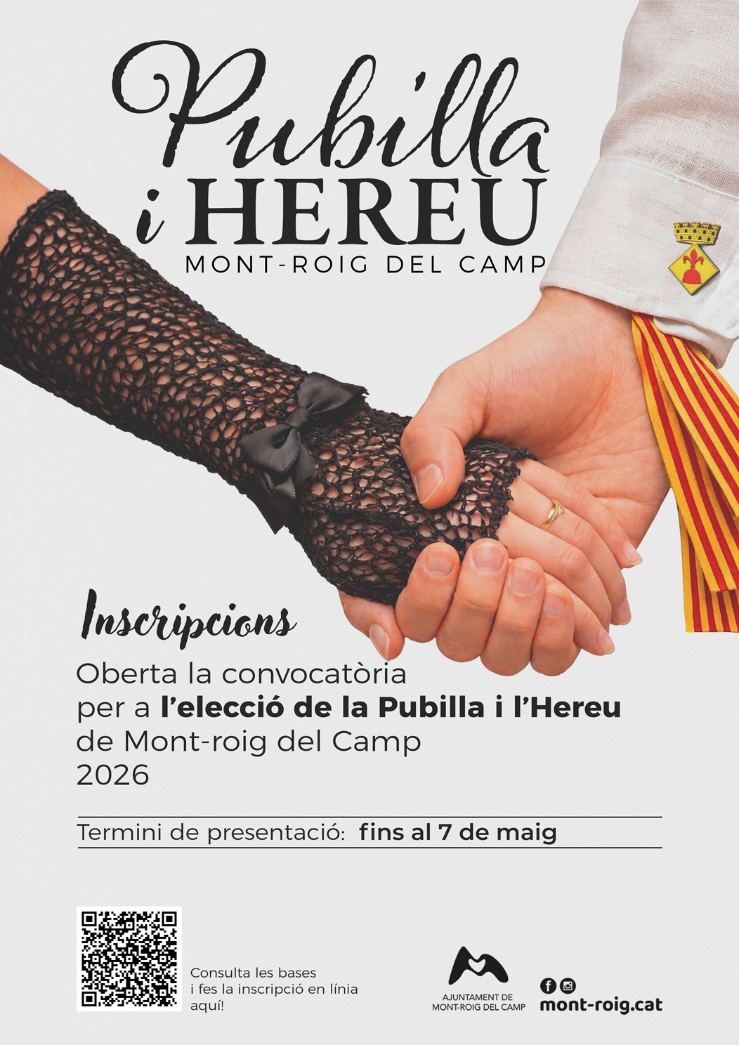 El acto central de la elección se celebrará el sábado 16 de mayo de 2026. El Ayuntamiento de Mont-roig del Camp reafirma su compromiso con esta festividad y anima a todo el tejido asociativo a participar activamente en una celebración que destaca por su valor cultural y de cohesión entre la juventud y la comunidad local.